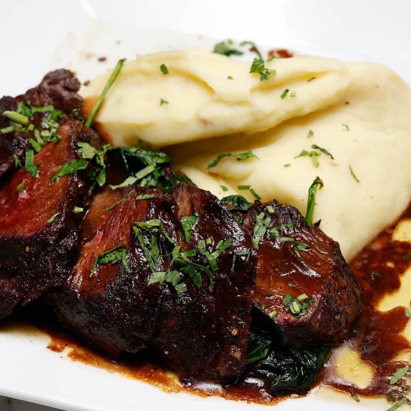 Grilled Hanger Steak, Mashed Potatoes, Haricot Vert